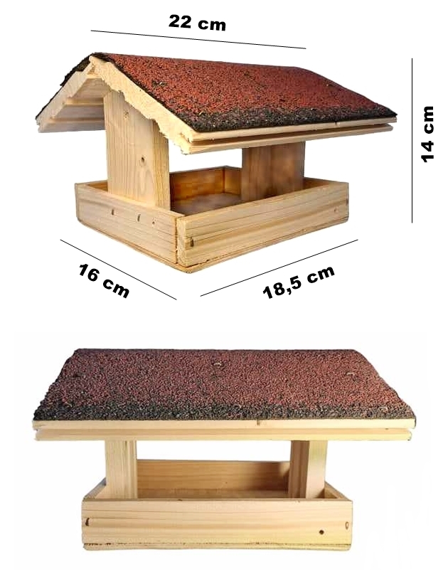 Különleges a speciális tetőbevonattal készült, amely megvédi az etetőt az időjárástól. A nyitott oldalaknak köszönhetően a madárház szabad repülést biztosít tollas barátainak.